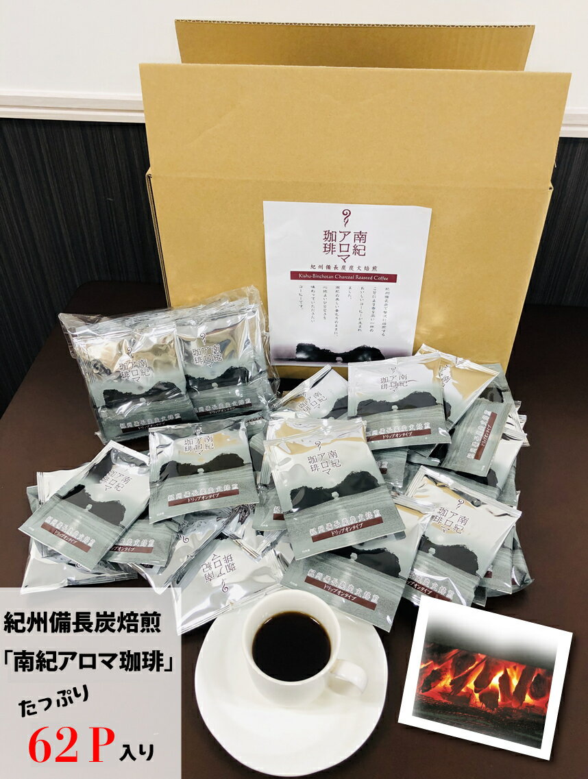 【ふるさと納税】紀州備長炭焙煎「南紀アロマ珈琲」ドリップバッグコーヒー62P入 / 田辺市 南紀アロマ珈琲 アロマ珈琲 コーヒー 珈琲 紀州備長炭焙煎 紀州備長炭 備長炭