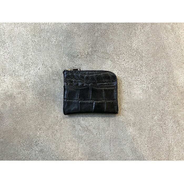 - 【ふるさと納税】 J-36 L型ミニウォレット(財布)【牛革(ラックスクロコ)】ブラック