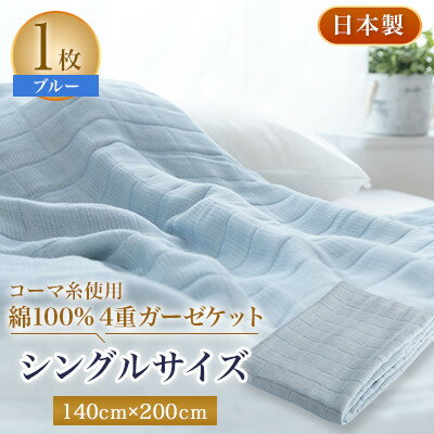 - 【ふるさと納税】コーマ糸を使った綿100%4重ガーゼケット ブルー【1052956】