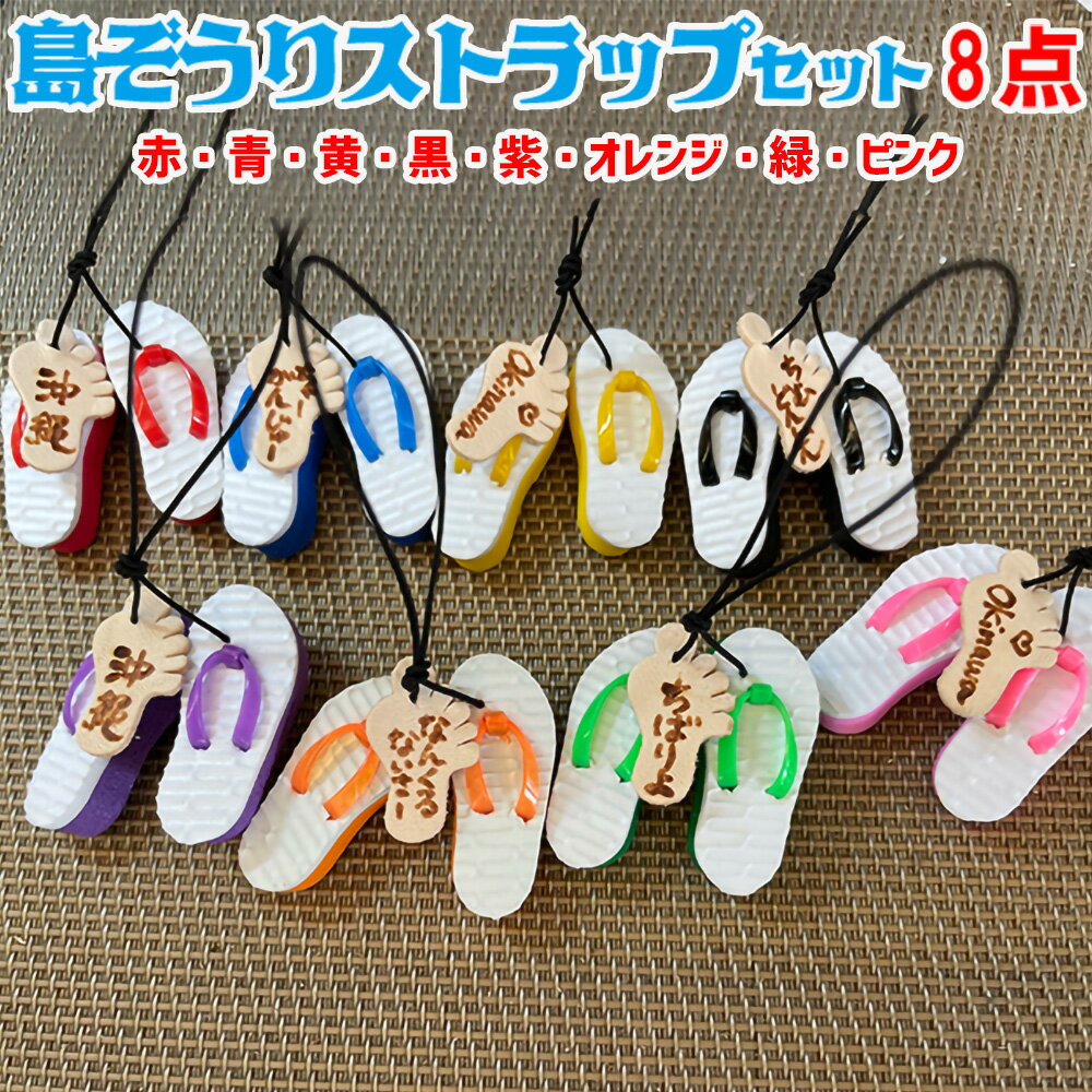【ふるさと納税】島ぞうりストラップ 8個セット(赤・青・黄・ピンク・緑・紫・黒・オレンジ)