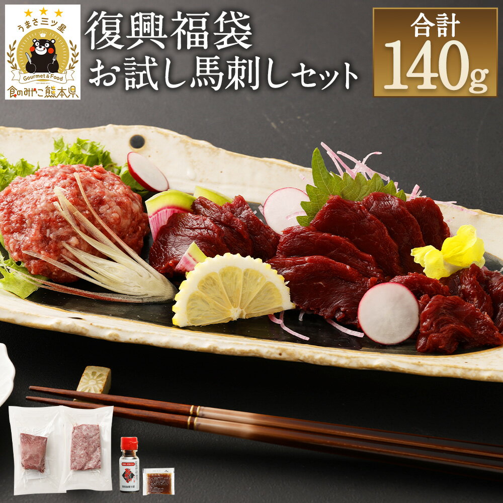 - 【ふるさと納税】復興福袋 お試し馬刺しセット 約140g 馬刺しのたれ付き 赤身ブロック 桜うまトロ お試し 真空パック 熊本馬刺し セット 食べ比べ 冷凍 送料無料