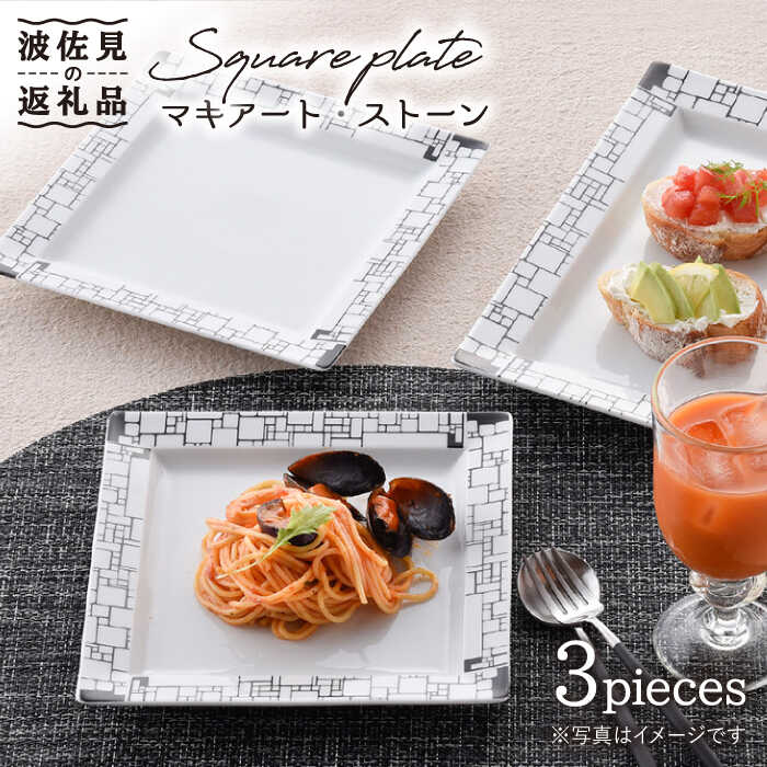 - 【ふるさと納税】【波佐見焼】マキアート・ストーン スクエア プレート 3枚セット 食器 皿 【丹心窯】 [AB23]