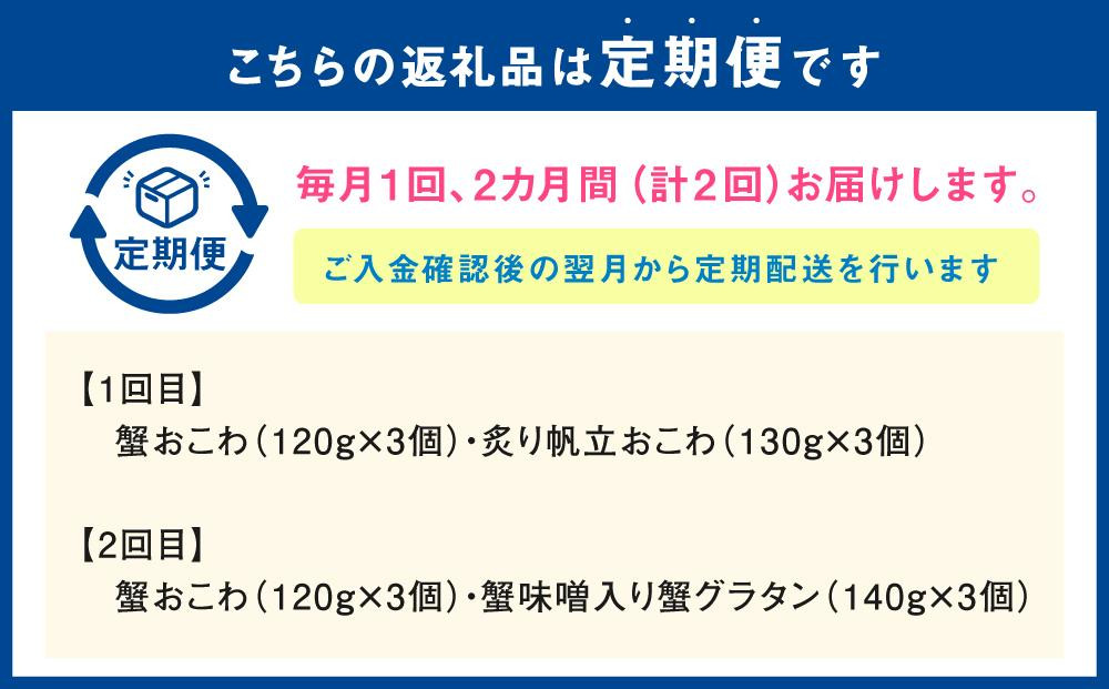 - 【全2回定期便】佐藤水産の蟹・帆立おこわと蟹グラタンの2回定期便