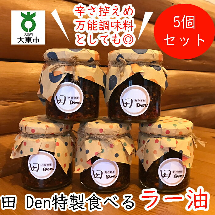 - 【ふるさと納税】田 ( でん ) 特製 食べるラー油 5個 ! こだわり 手切り仕立て (辛さはだいぶ控えめ) | ラー油 辣油 調味料 お取り寄せ 取り寄せ 万能調味料 おいしい 美味しい 食品 お土産 おみやげ 大阪 大東市 大阪府 支援 返礼品 楽天ふるさと 納税 関西
