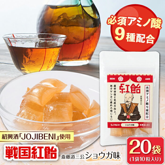 【ふるさと納税】【JOJIBENI】アミノ酸たっぷりの紹興酒を使った 戦国紅飴 斎藤道三ショウガ味 個包装 20袋入り(計200粒)【クインズゲイトオリジナル】