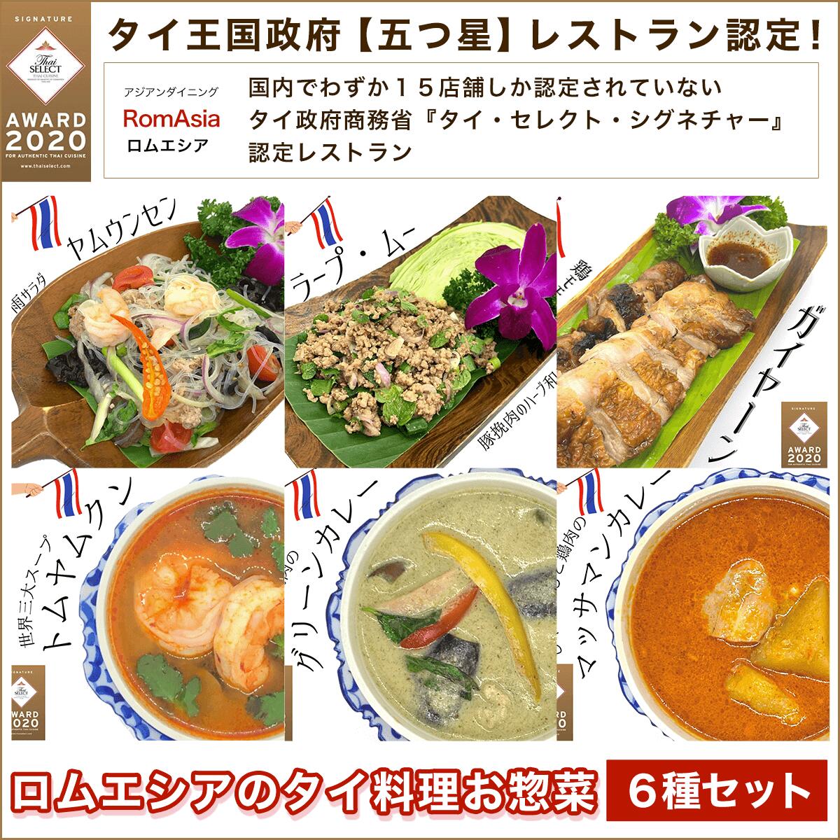 【ふるさと納税】タイ王国政府【五つ星】レストラン認定!ロムエシアのタイ料理お惣菜6種セット ふるさと納税 タイ料理 ヤムウンセン ラープ・ムー ガイヤーン カレー グリーンカレー トムヤムクン KBE001