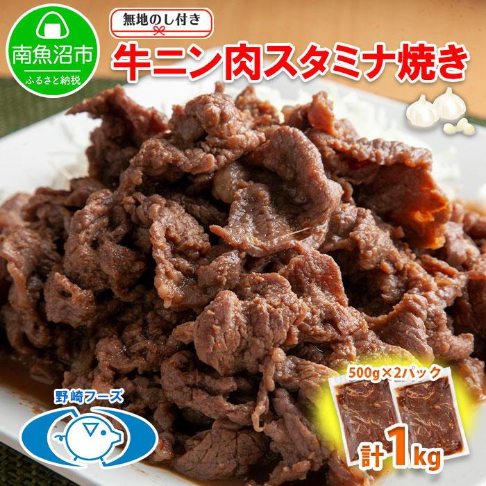 【ふるさと納税】無地熨斗 新潟県 南魚沼市 牛ニン肉スタミナ焼き 500g × 2パック 計1kg 野崎フーズ 冷凍 惣菜 簡単 調理 牛肉 にんにく おかず 味付き