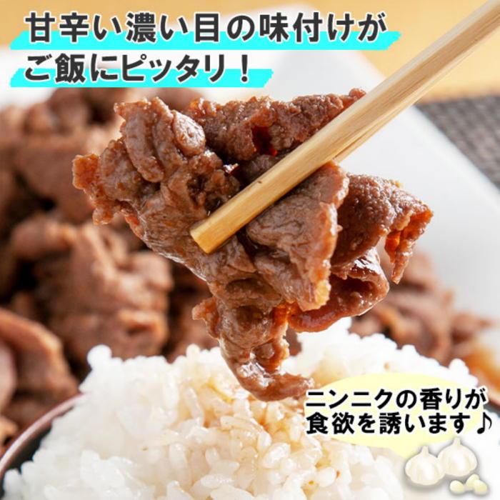 - 【ふるさと納税】無地熨斗 新潟県 南魚沼市 牛ニン肉スタミナ焼き 500g × 2パック 計1kg 野崎フーズ 冷凍 惣菜 簡単 調理 牛肉 にんにく おかず 味付き