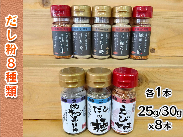 【千畳敷センター】青森県深浦産・無添加だし粉 25g/30g 8本セット【8種類×1本ずつ】