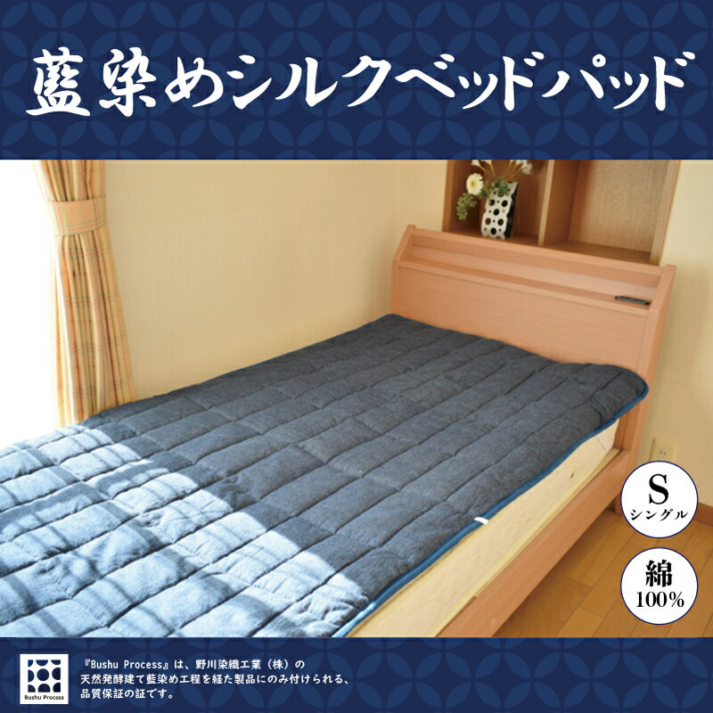 【ふるさと納税】 寝具 シングル ベッドパッド シルク 天然 絹わた 藍染 自然派