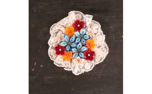 - つまみ細工の髪飾り(ピン)直径11×高さ1cm W-ww-044A
