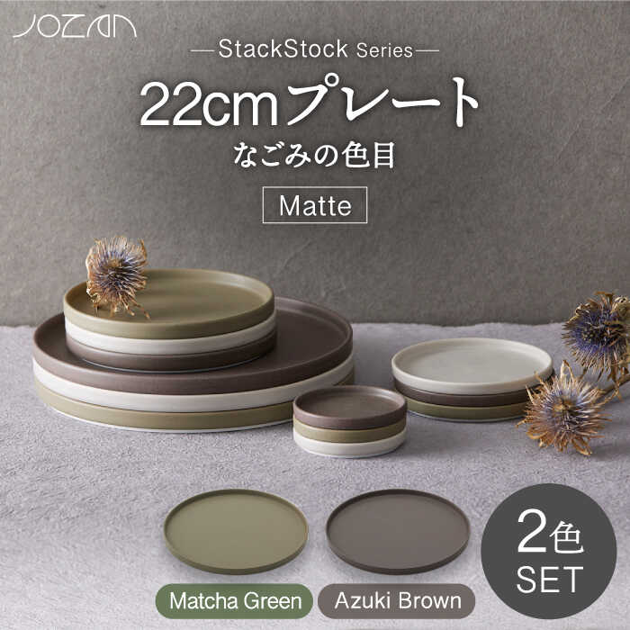 - 【ふるさと納税】【美濃焼】StackStock なごみの色目(Matte)22cm プレート ペア セット Matcha Green×Azuki Brown【城山製陶所】食器 皿 プレート [MCK037]