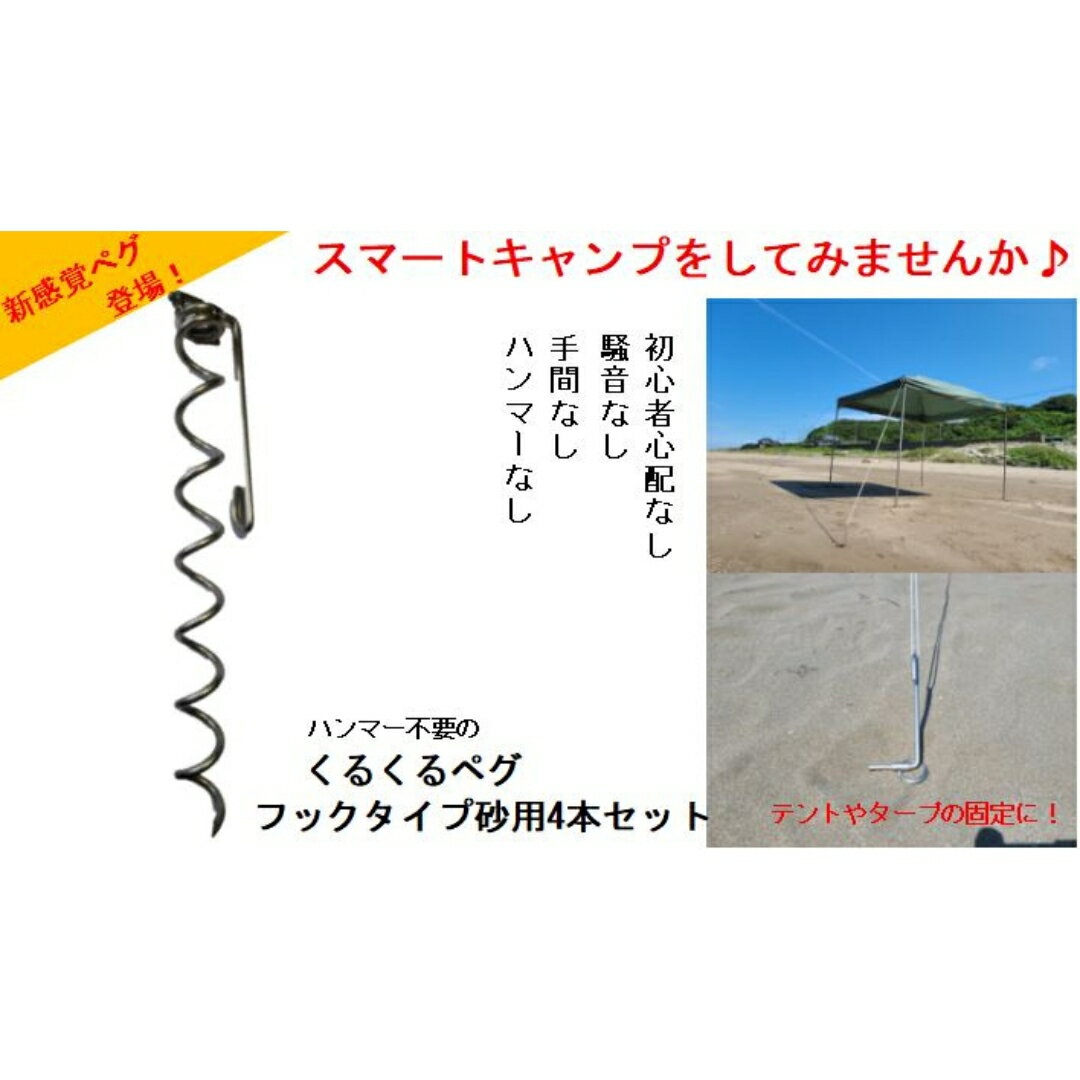 - 【ふるさと納税】ハンマー不要の回転式ペグ [くるくるペグ] フックタイプ砂用 4本セット ステンレス製 燕三条製 防災用品 キャンプ用品 アウトドア用品 【025S027】
