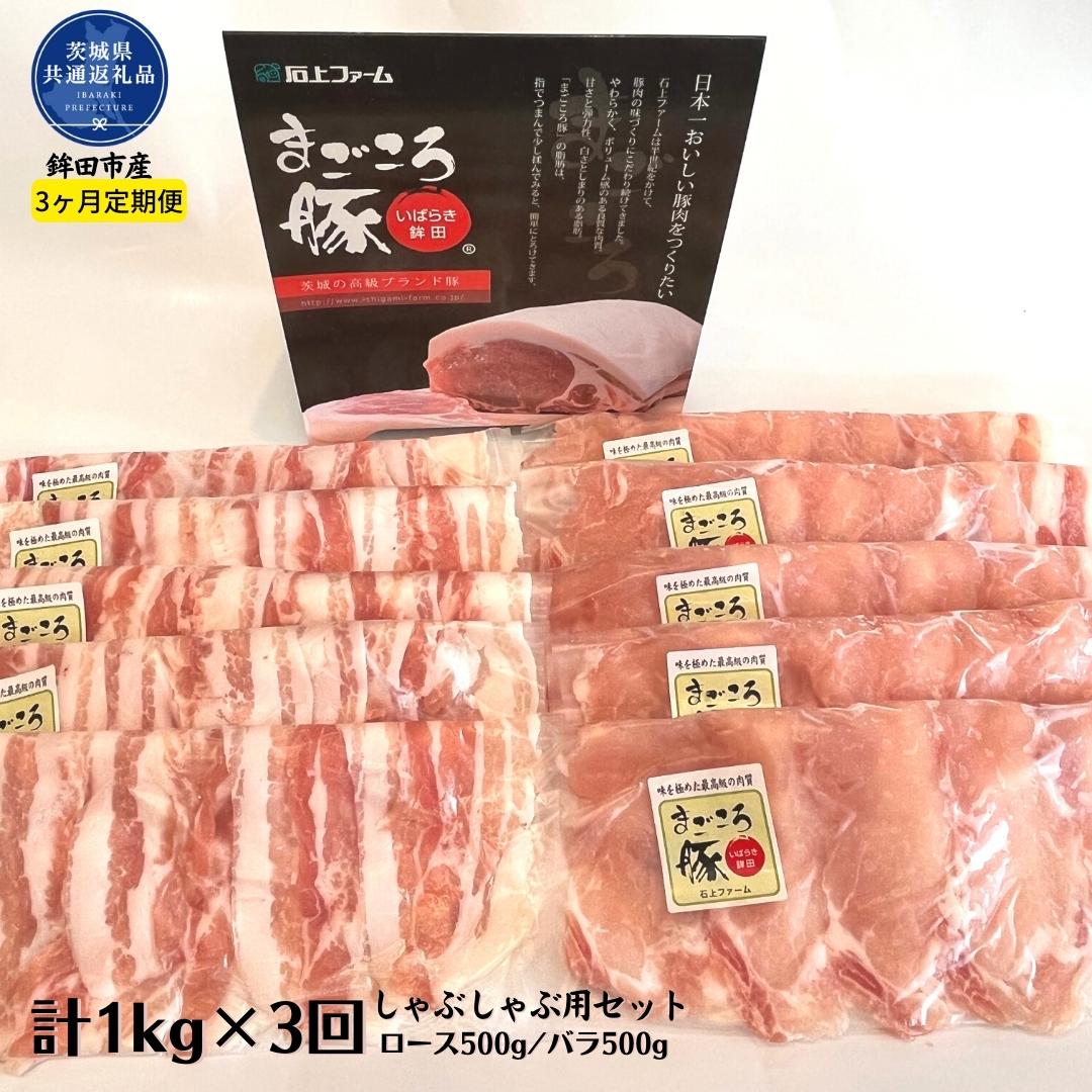 - 【ふるさと納税】【3ヶ月定期便】まごころ豚 しゃぶしゃぶ用セット 1kg(ロース&バラ)×3回(茨城県共通返礼品・鉾田市産)