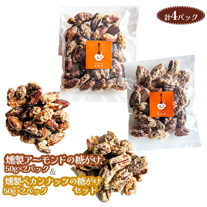 【ふるさと納税】燻製アーモンドの糖がけ&燻製ペカンナッツの糖がけセット 計4パック(各2パック)【630033】
