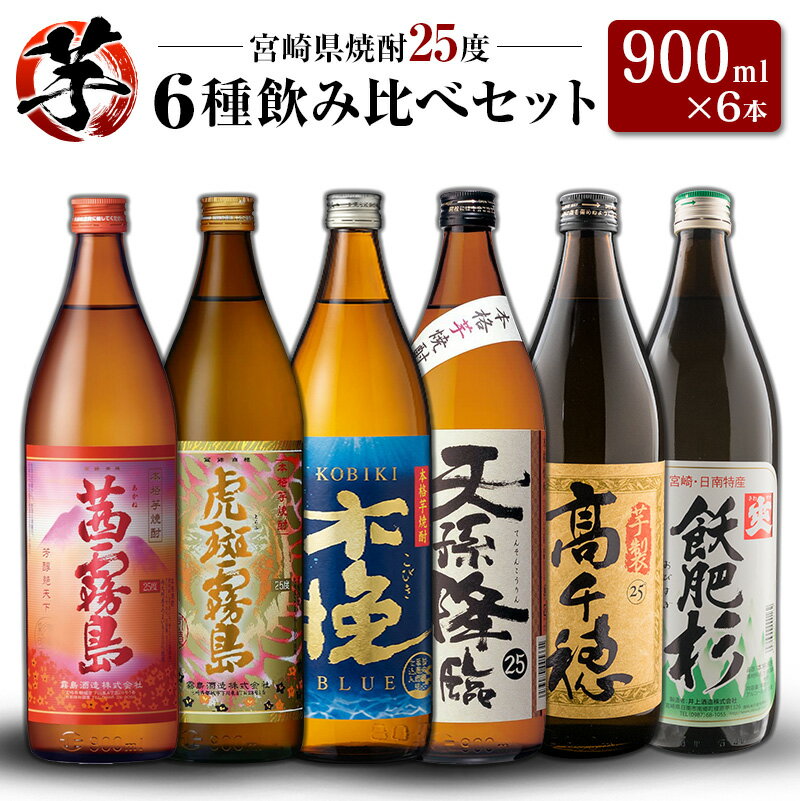 【ふるさと納税】「宮崎県芋焼酎」茜霧島・虎斑霧島・木挽BLUE・天孫降臨・芋製高千穂・爽飫肥杉 25度 900ml瓶 飲み比べ6本セット