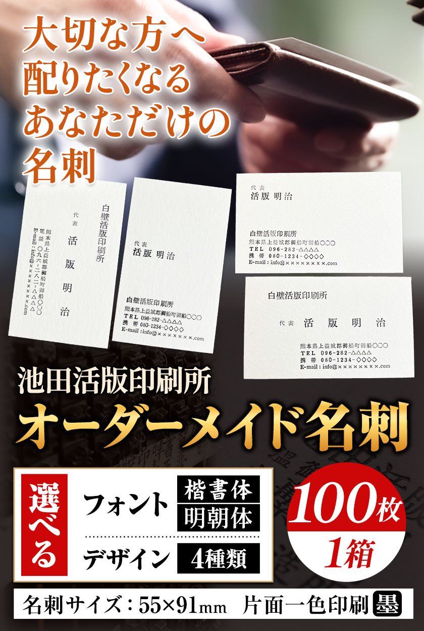 - 【ふるさと納税】名刺 オーダーメイド名刺 100枚(1箱) レトロ おしゃれ オリジナル 池田活版印刷所《60日以内に出荷予定(土日祝除く)》活版印刷 楷書体 明朝体 選べるデザイン 名刺作成 ハーフウェアコットン