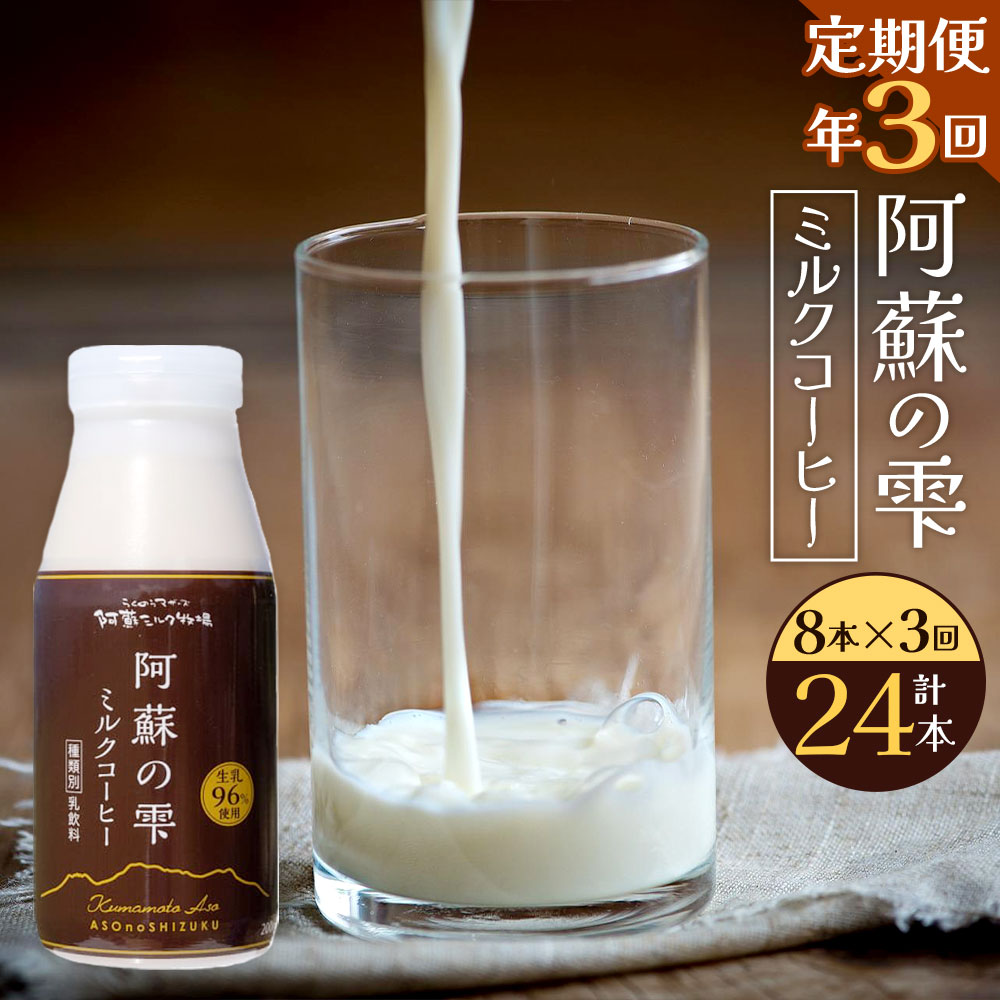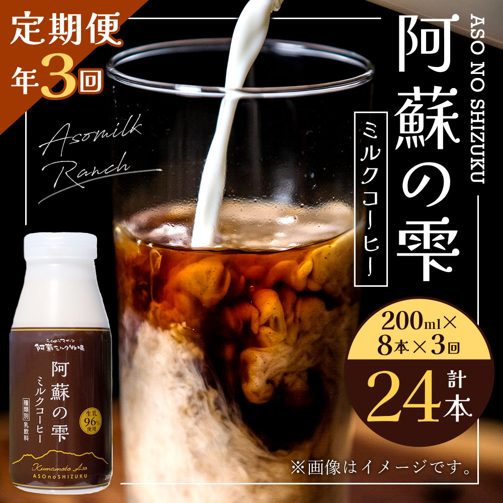 【ふるさと納税】【3回定期便】阿蘇の雫 ミルクコーヒー 200ml×8本セット 合計24本 合計1.6L×3回 ミルク コーヒー 生乳96%使用 乳飲料 ドリンク 飲み物 ボトル 定期便 熊本県産 国産 冷蔵 送料無料