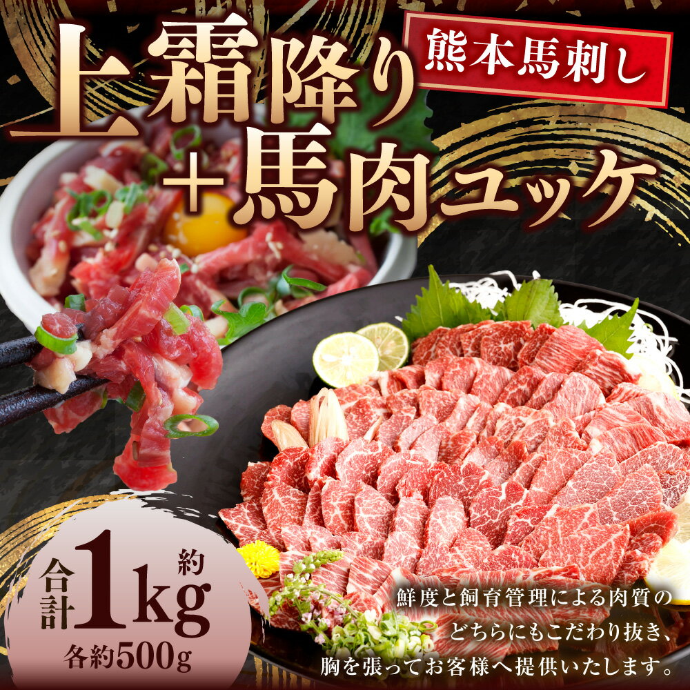【ふるさと納税】熊本馬刺し 上霜降り(トロ)500g+馬肉ユッケ500g 合計1kgセット たれ・生姜付き 小分け 真空パック 国内肥育 生食用 新鮮 冷凍 送料無料