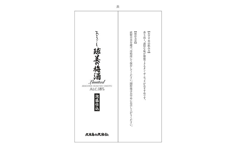 【久米島の久米仙】あらごし球美の梅酒 Limited 750ml
