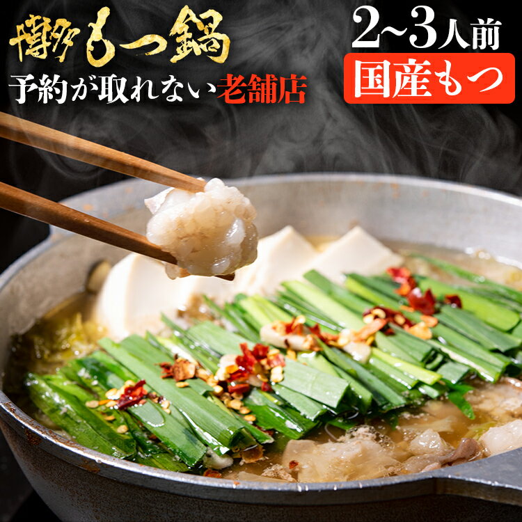 - 【ふるさと納税】老舗人気店 博多 本格 もつ鍋 セット 2~3人前 国産もつ 小腸 ちゃんぽん麺 薬味付き 鍋セット お取り寄せ グルメ 惣菜 福岡 にんにくスライス 特製辛味噌 送料無料
