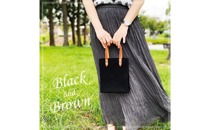 倉敷産帆布×本牛革 ミニトートバッグ(黒×ブラウン)◇