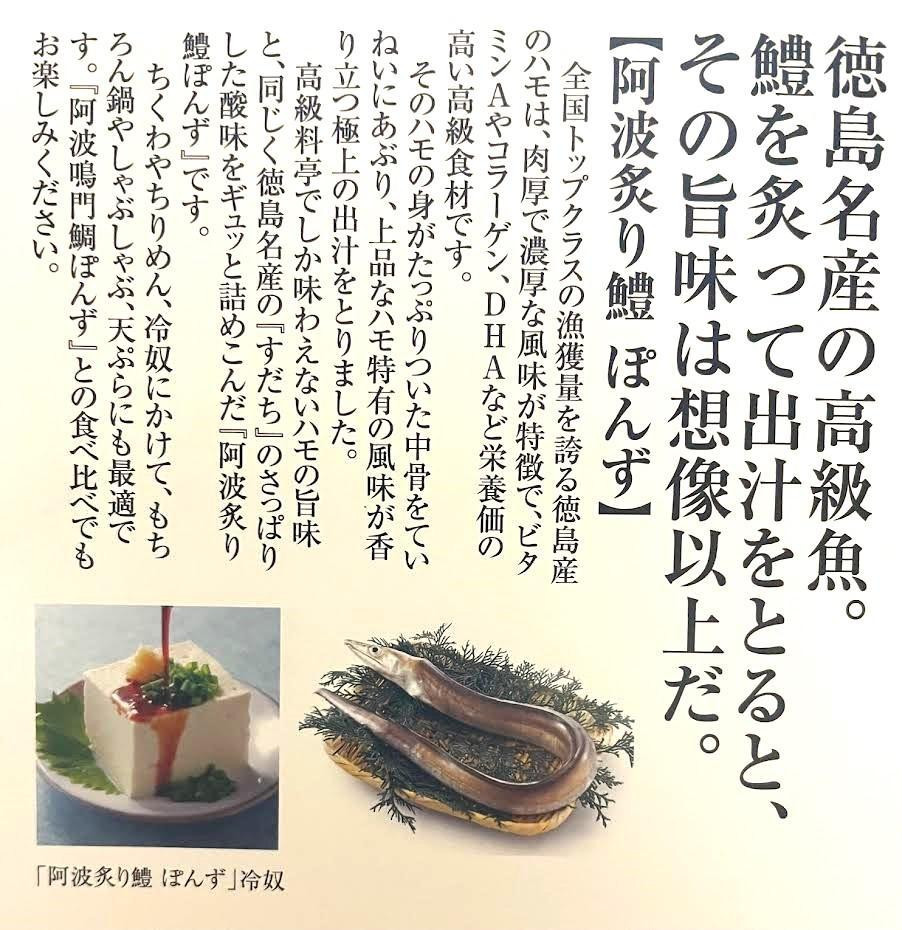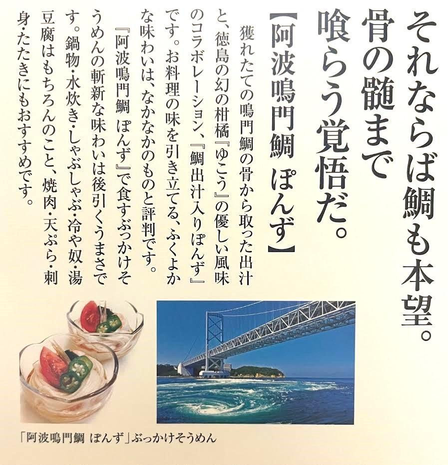 - 阿波鳴門鯛ぽんず(275ml)・炙り鱧ぽんず(275ml)・鳴門鯛味噌(125g)セット中(各1個)