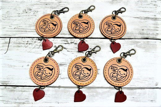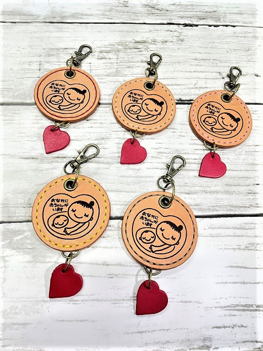 革製 マタニティマーク ハート付き こげ茶 / 本革 牛革 どんなコーデにも合う 手作り 手縫い レザー 栃木レザー 最高級 国産 ヌメ革