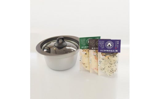 - 銀シャリ釜(3合炊き)・新潟産コシヒカリ炊き込みご飯セット
