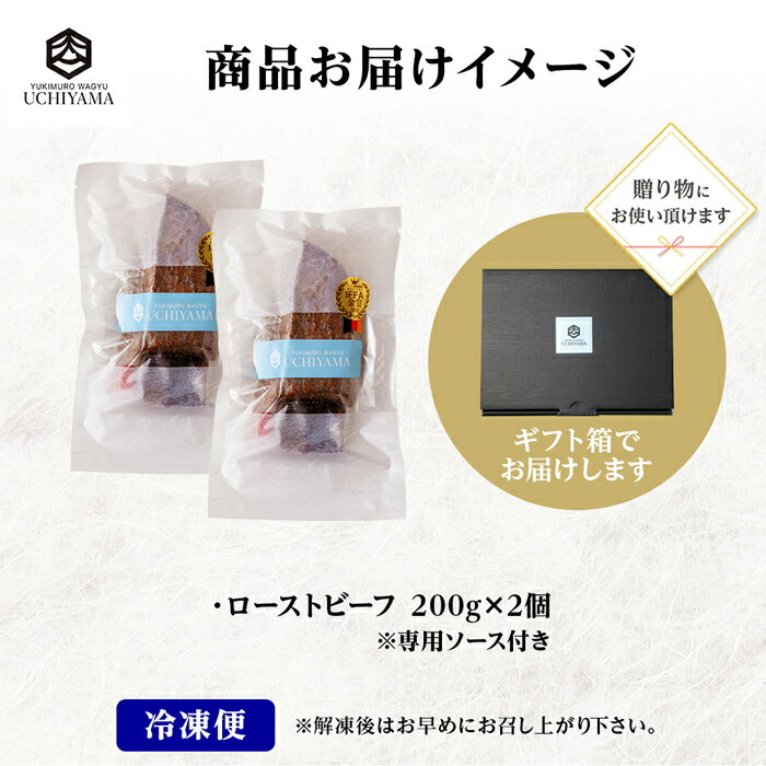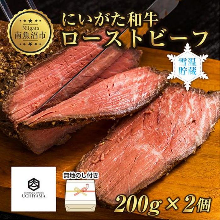 【ふるさと納税】無地熨斗 ローストビーフ 200g 2個 計400g にいがた和牛 黒毛和牛 国産 和牛 肉 牛肉 専用ソース付き 新潟県 南魚沼市 冷凍 のし gift お土産 プレゼント 贈答 贈答品 YUKIMURO WAGYU UCHIYAMA 内山肉店