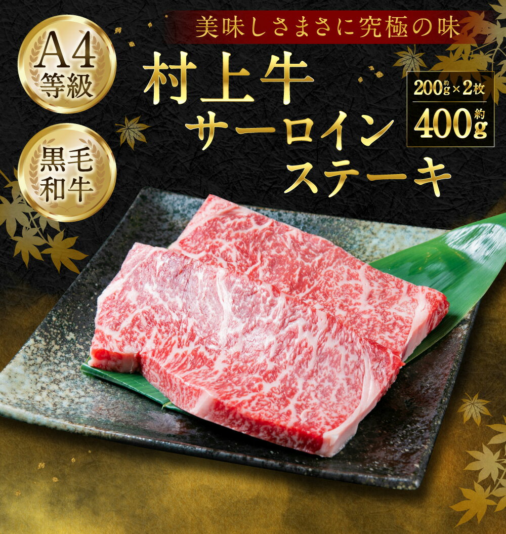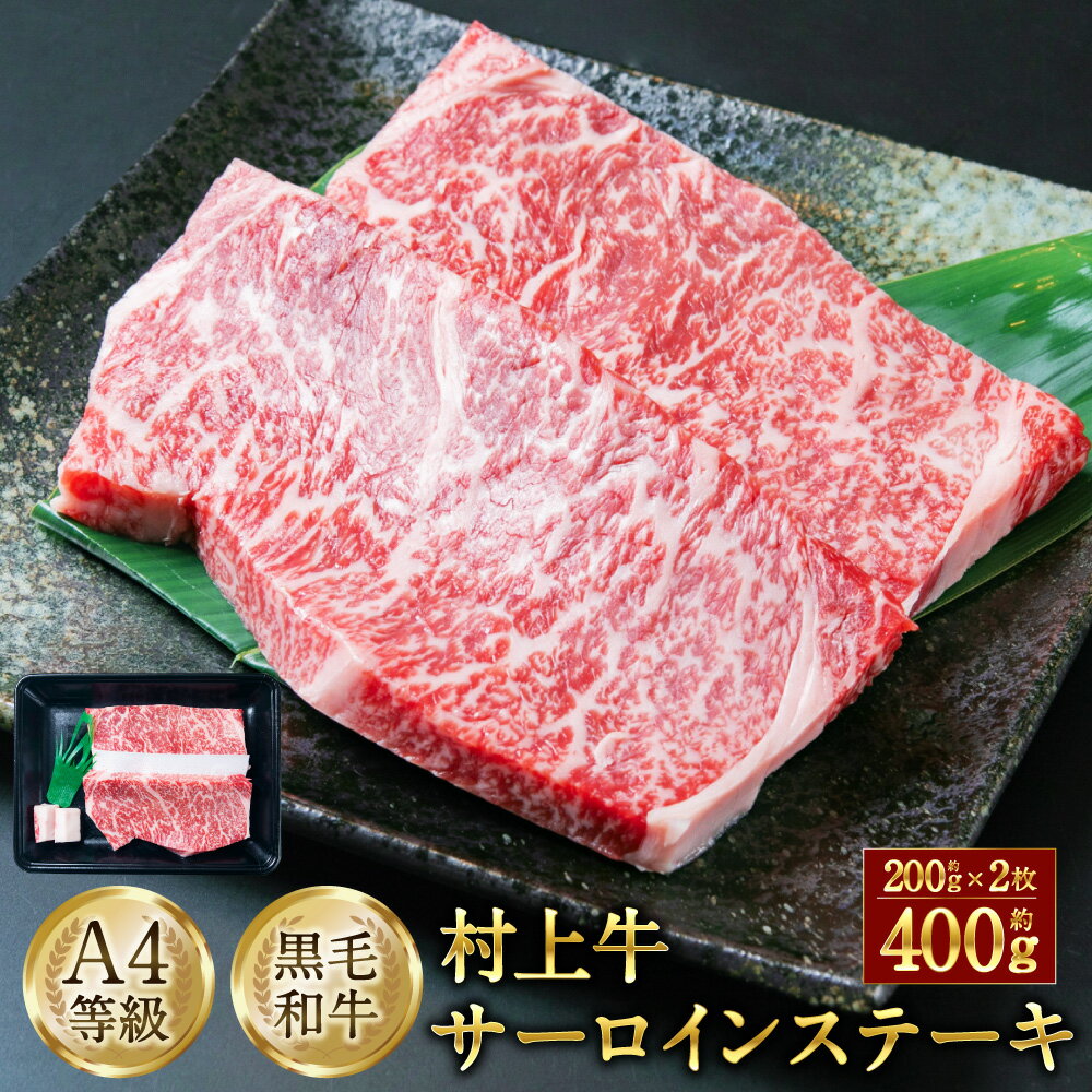 - 【ふるさと納税】 村上牛 A4等級 サーロイン ステーキ 約200g × 2枚 合計約400g 肉 サーロイン ステーキ 牛肉 和牛 にいがた和牛 黒毛和牛 ブランド 人気 高級 贅沢 お取り寄せ 冷蔵 国産 新潟県 村上市 送料無料 D4002