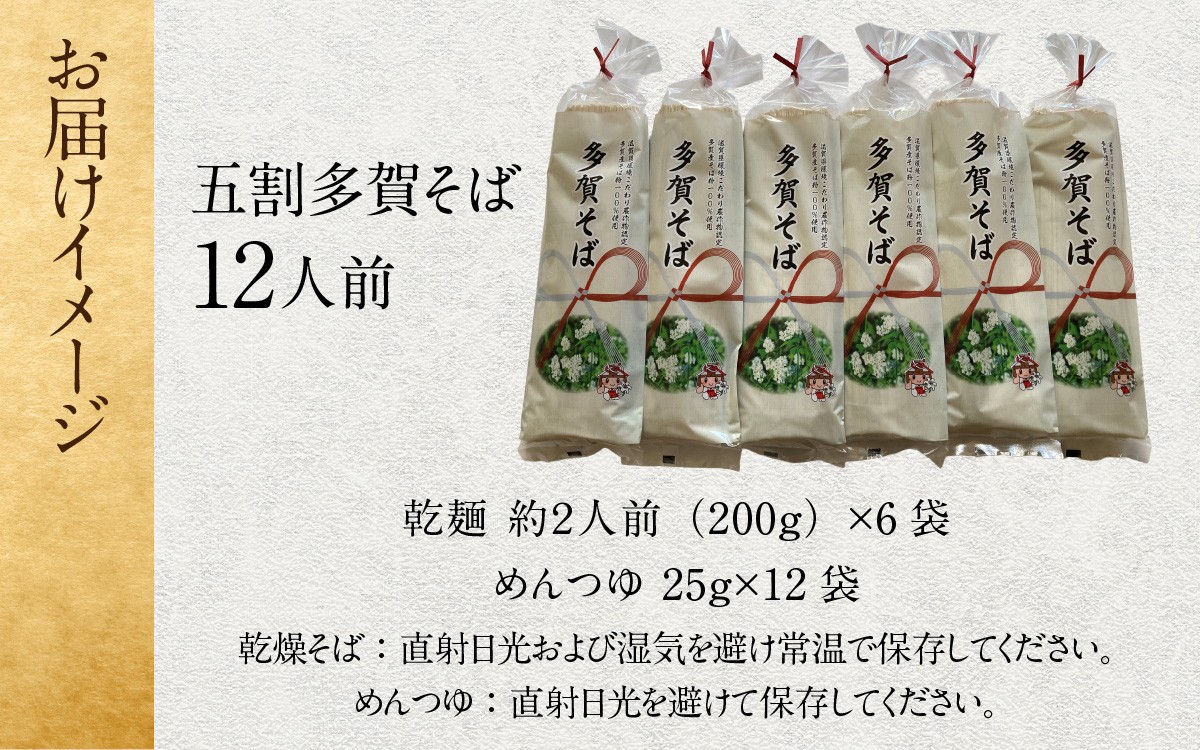 滋賀県環境こだわり農作物認定 多賀産そば粉100%使用した五割多賀そば 200g× 6袋(乾麺 つゆ付)[A-01503]
