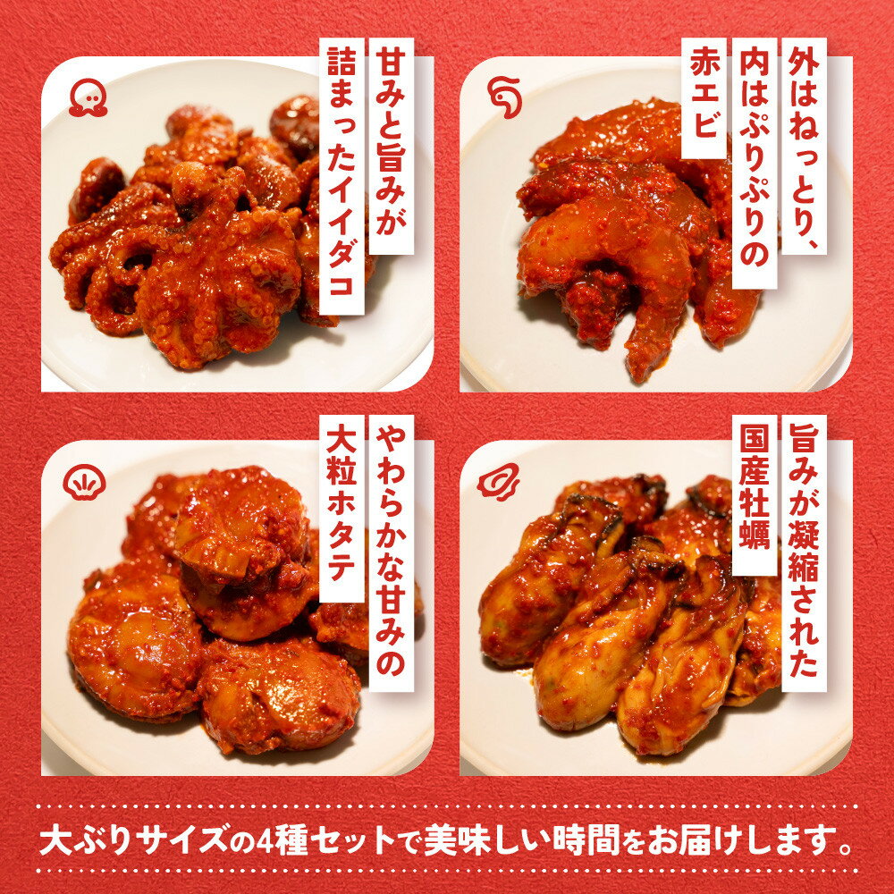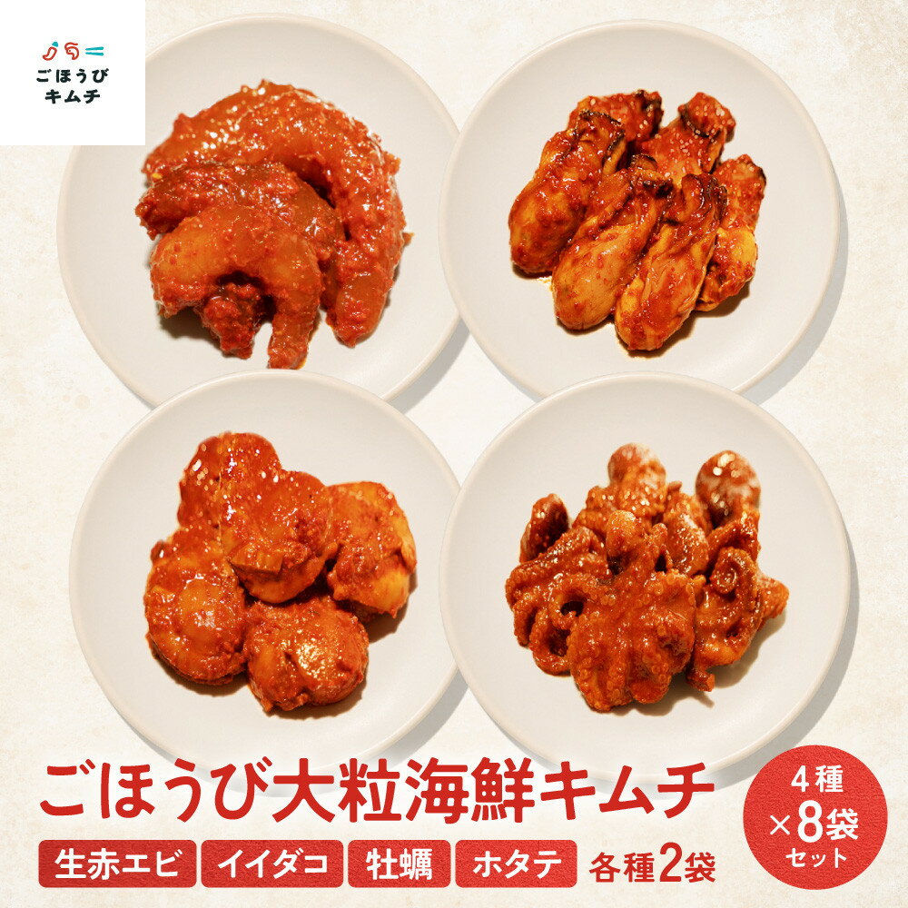 - 【ふるさと納税】【ごほうびキムチ】大粒海鮮キムチ4種8袋セット(生赤エビ・イイダコ・牡蠣・ホタテ 各種2袋)【 キムチ 神奈川県 小田原市 】