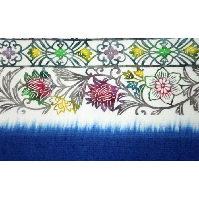 - 【ふるさと納税】職人が丹精込めて染めあげた世界で一つだけの「手差し型染め 半幅帯」(唐草柄・青系)