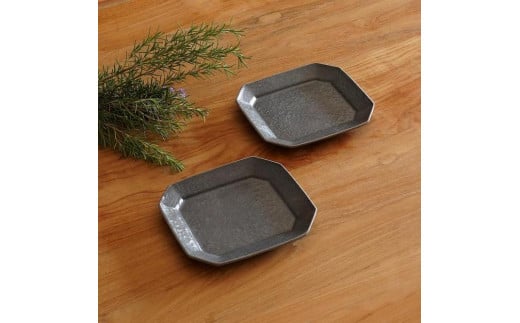 信楽焼 八角ケーキ皿 グレー釉 2枚セット【古谷製陶所】