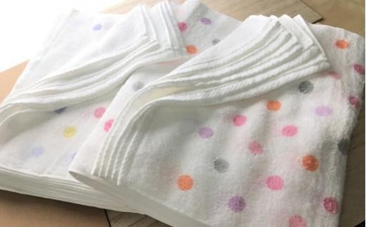 【大阪泉州タオル】パステルドット柄タオル 12枚セット / ピンク・ブルー系×各6枚 タオル フェイスタオル 泉州タオル 速乾 吸収 薄手 綿100% 水玉柄 普段使い まとめ買い