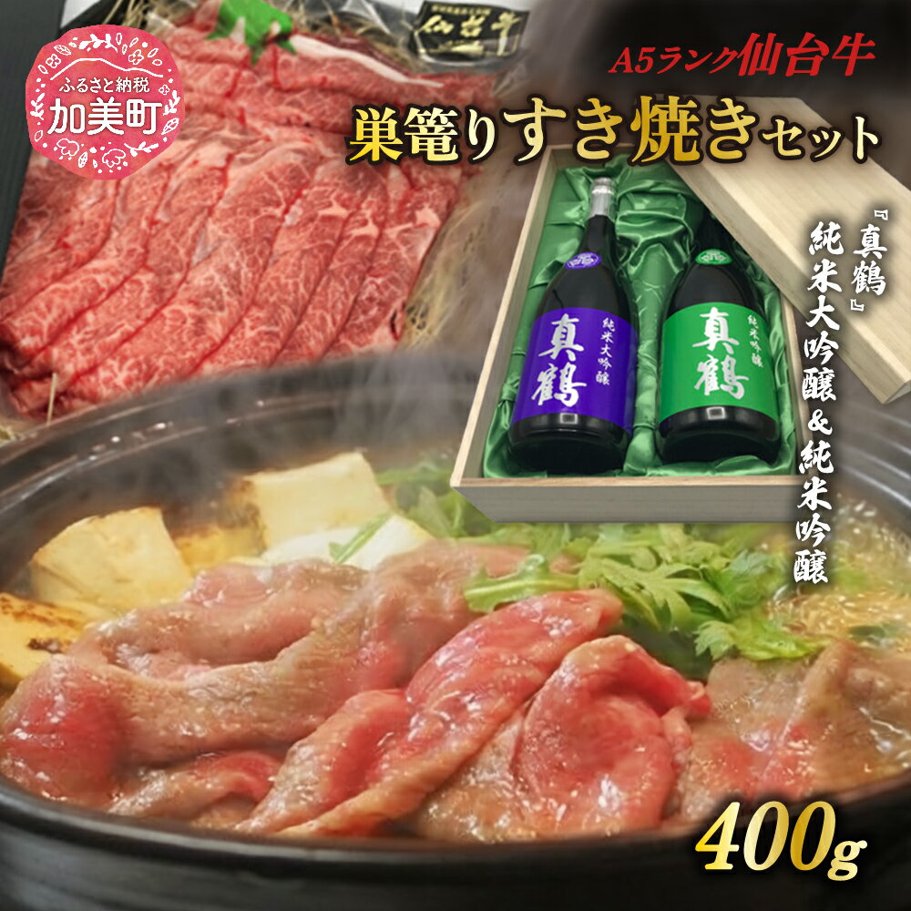 【ふるさと納税】【巣篭りすき焼きセット!】真鶴 純米大吟醸/純米吟醸とA5ランク仙台牛すき焼き用(肩・もも)400g [44580920]