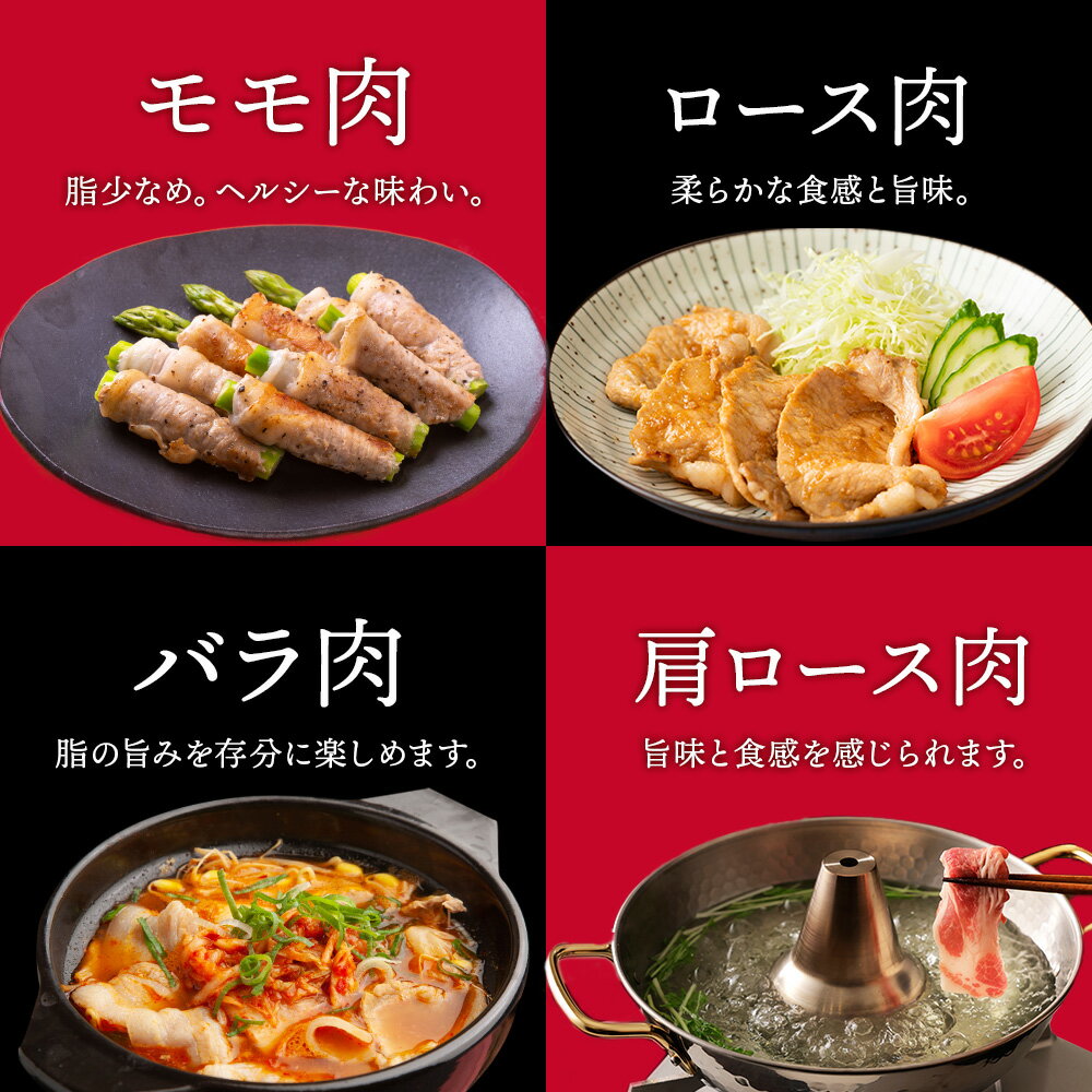 - 【ふるさと納税】 北海道産 白老豚 食べ比べセット(ロース・バラ・肩ロース・モモ各250g) 豚肉 冷凍 国産 スライスロース バラ 肩ロース モモ 豚肉 白老豚 白老 北海道 北海道ふるさと納税 白老 ふるさと納税 北海道