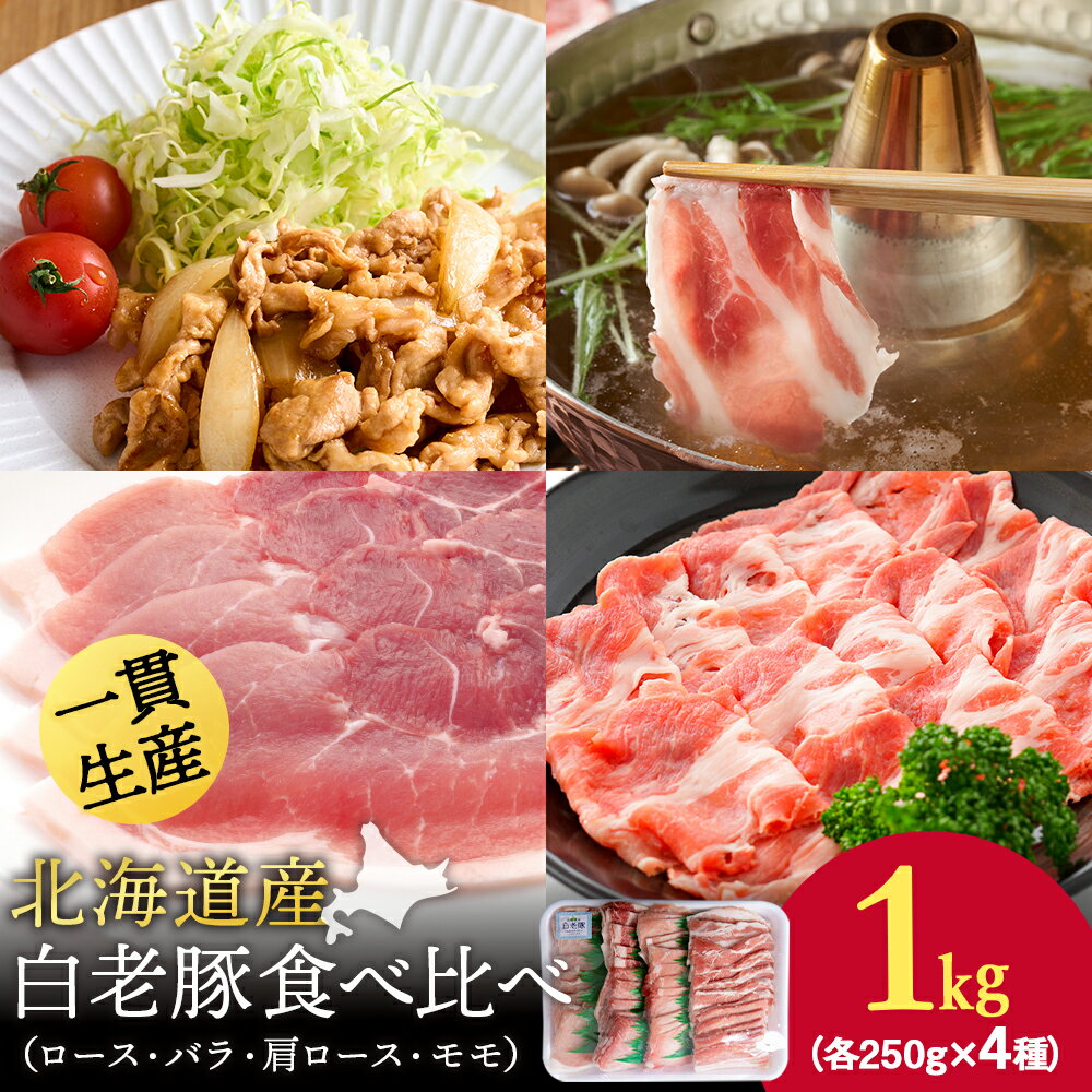 【ふるさと納税】 北海道産 白老豚 食べ比べセット(ロース・バラ・肩ロース・モモ各250g) 豚肉 冷凍 国産 スライスロース バラ 肩ロース モモ 豚肉 白老豚 白老 北海道 北海道ふるさと納税 白老 ふるさと納税 北海道