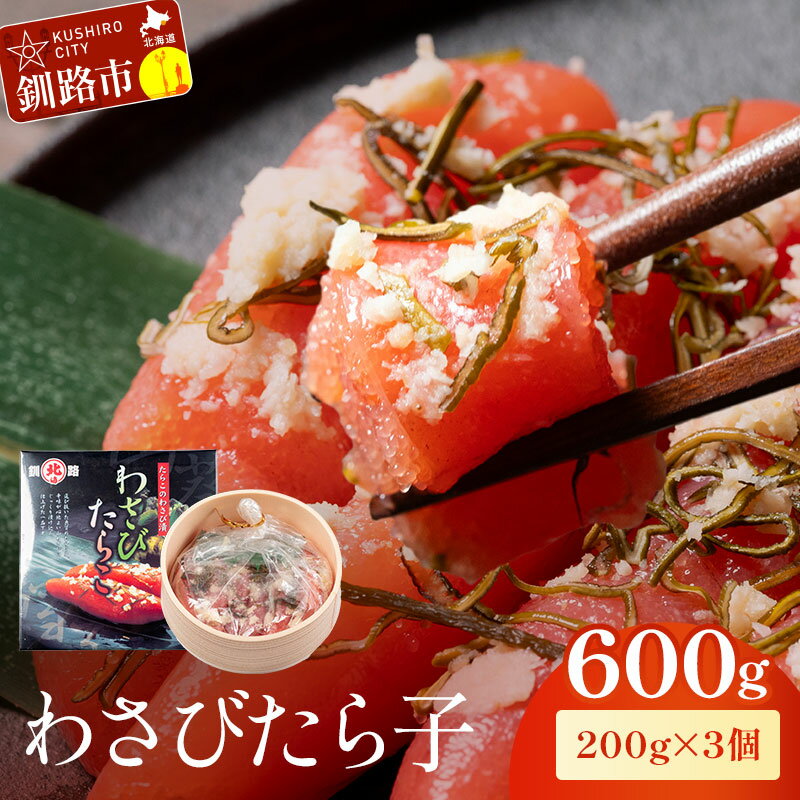 【ふるさと納税】わさびたら子(200g×3個)たらこ タラコ 魚卵 海産物 わさびタラコ わさび ご飯のお供 山わさび おつまみ 酒の肴 辛さ控えめ 人気 プチプチ グルメ 魚介類 魚介 北海道 釧路 ふるさと納税 F4F-1350