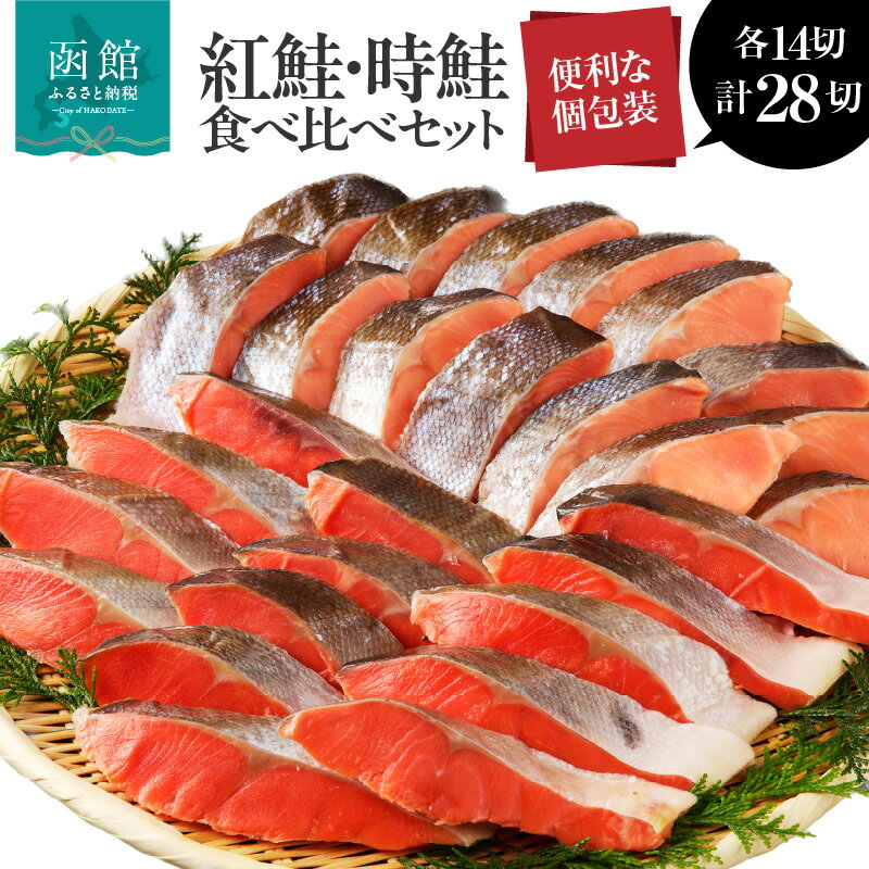 【ふるさと納税】お魚セット 紅鮭真空14切 時鮭真空14切 計 28切 切り身 冷凍 1切れずつ 個包装 食べたい分だけ 便利 魚介 魚 セット 小分け 焼くだけ お手軽 紅鮭 時鮭 しゃけ 真空パック 朝食 弁当 おかず 酒の肴 おつまみ 北海道 函館 送料無料 お取り寄せグルメ