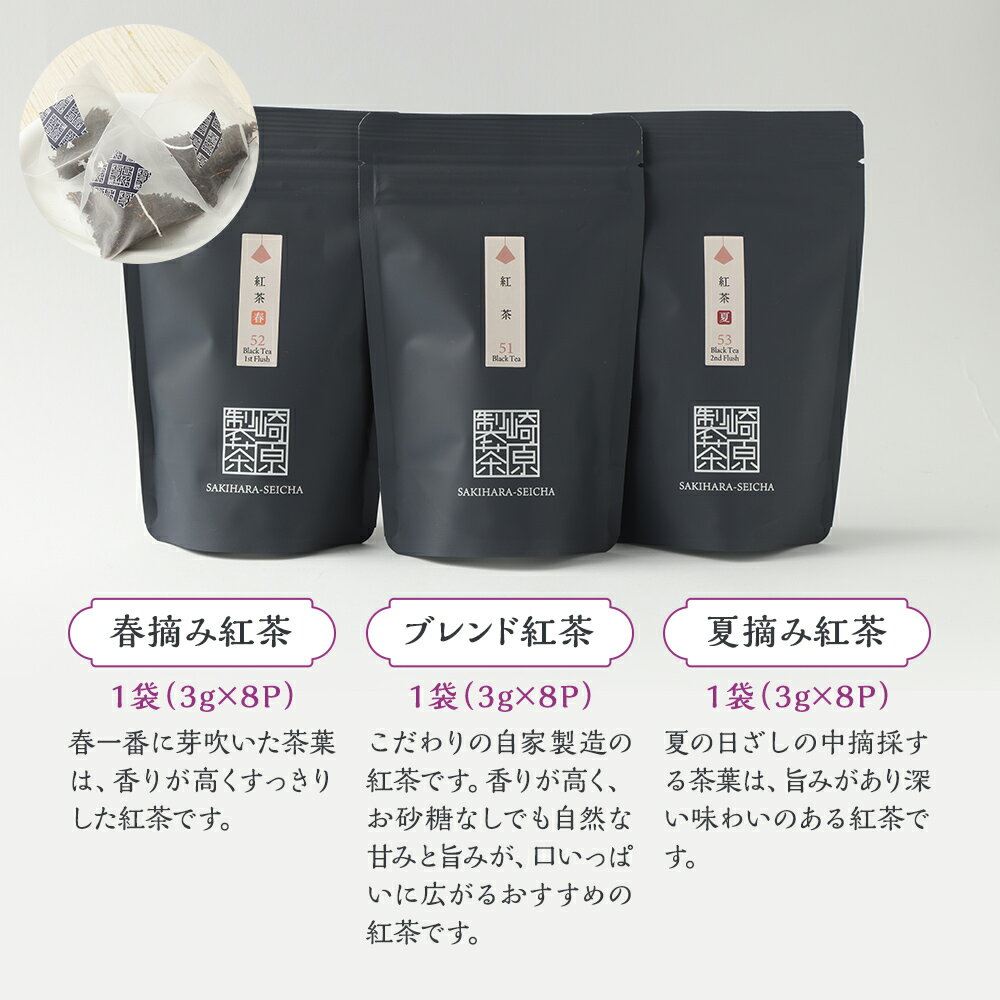- 【ふるさと納税】紅茶 3種 詰め合わせセット(ティーカップ用 ティーバックタイプ)(各1袋 3g×8パック)計24パック ブレンド紅茶 春摘み紅茶 夏摘み紅茶 自家製 茶葉 アイスティー ホットティー 飲料 お取り寄せ 国産 鹿児島県 薩摩川内市 送料無料