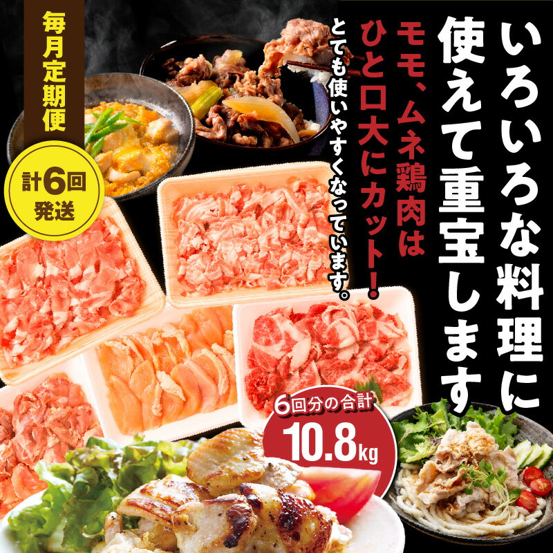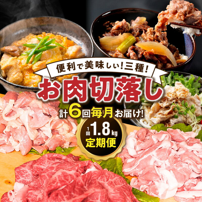 - 【ふるさと納税】毎月お届け!美味い3種のお肉切落し1.8kg定期便/計6回発送_2165R-M
