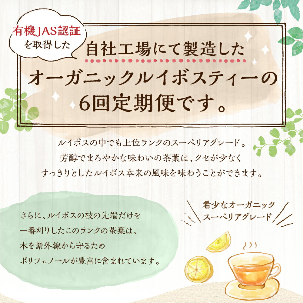 - 【ふるさと納税】【年6回定期便】オーガニックルイボスティー 計12袋 (1回あたり2袋 :260包入り) オーガニック ルイボス スーペリアグレード お茶 茶 紅茶 健康茶 ハーブティー ティーバッグ 有機JAS 自社工場 有機 定期便 6回 九州 熊本県 送料無料