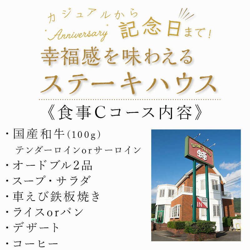 - 【ふるさと納税】ステーキハウス蜂 御食事 Cコース(1名様) ステーキ お食事券 チケット ランチ ディナー「2023 令和5年」