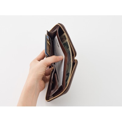 二つ折り財布 牛革 ミドルサイズ ラウンドジップ Dカン付 レザーウォレット