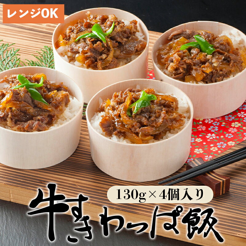 - 【ふるさと納税】 国産牛 牛すき わっぱ飯 130g×4個 4人前 プロトン冷凍 レンジ調理 簡単 すぐ食べれる 調理不要 お取り寄せグルメ 和食 お惣菜 牛スキ 牛肉 すき焼き 牛丼 無添加