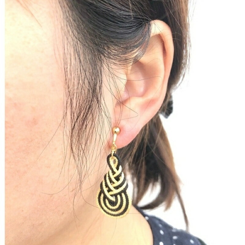 - 【ふるさと納税】【伊賀組紐】イヤリング みょうが 黒金銀