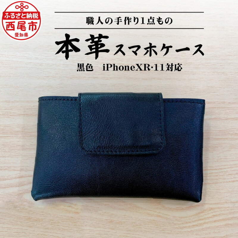 - 【ふるさと納税】Made in Japan《スマホケース 黒色 (iPhoneXR・11対応)》T032-17 / 腰に付けるスマホケース スマホポーチ スマートフォンポーチ ベルト装着型 ベルト通し 本革 日本製 革製品 ブラック 職人 手作り 本革スマホケース マジックテープ式 愛知県 西尾市