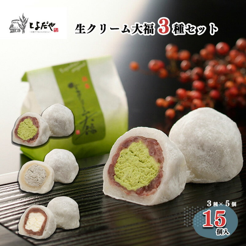 - 【ふるさと納税】生クリーム 大福 (3種詰め合わせ)| スイーツ 和菓子 洋菓子 お菓子 菓子 抹茶 黒ゴマ 餡 送料無料 とよだや 茶菓子 大福 生クリーム